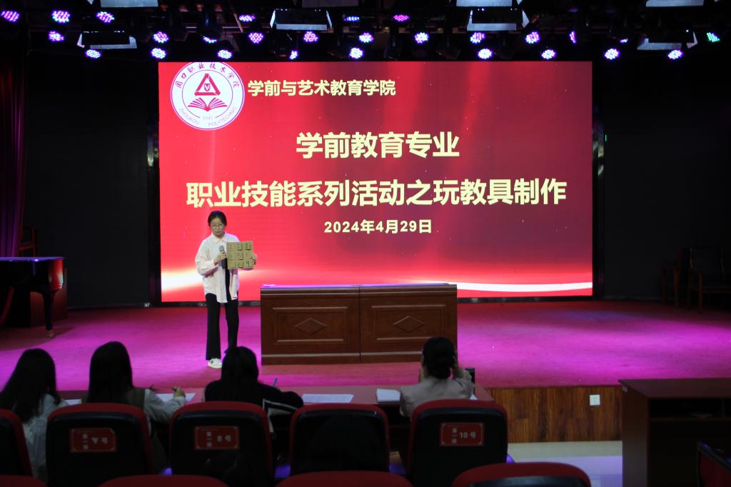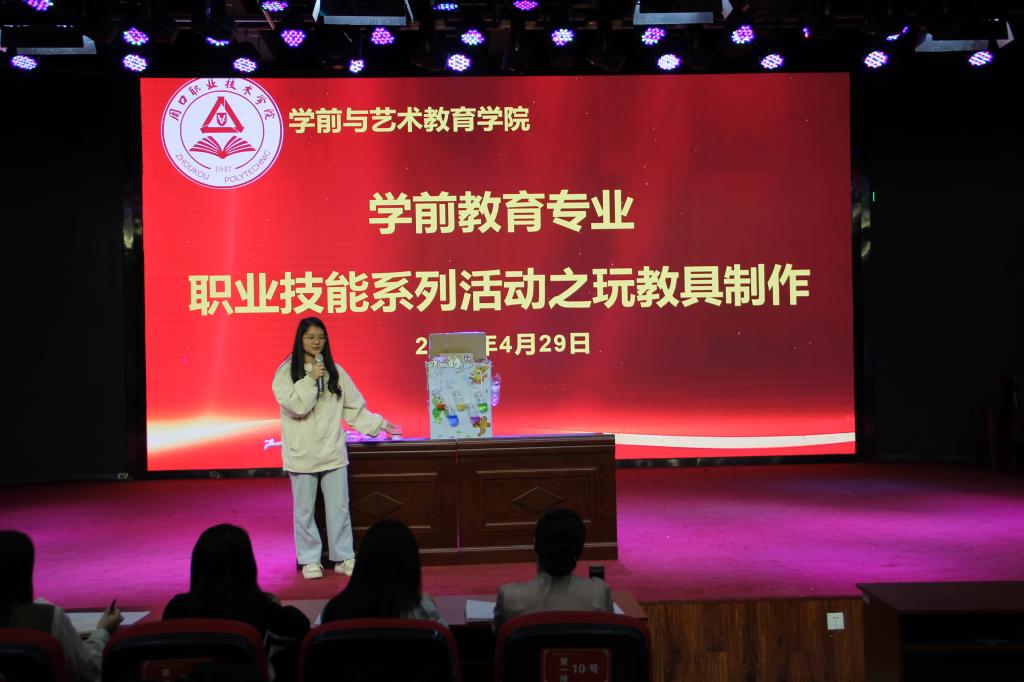 为提高学生动手实践能力以及对专业知识的掌握水平,助推学生专业技能发展,为学生职业发展奠定基础,4月29日下午,ballBET贝博BB艾弗森学前教育专业在艺术演播厅举办职业技能系列活动之玩教具制作比赛。ballBET贝博BB艾弗森副院长耿润、教管办主任李晨阳、学前教研室主任吕维康出席比赛。