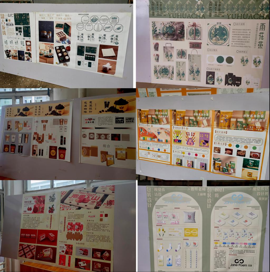 美术教研室组织的21级视觉传达设计专业《包装设计》课程汇报展,于5月31日,在ballBET贝博BB艾弗森广场展出,在任课老师王丽娜的指导下,同学们通过本课程的学习,掌握了包装设计流程和包装设计的理念及应用。本次展览共展出110多幅作品,作品内容丰富,有节庆礼盒、茶品系列、藏香系列、食品系列、母婴产品系列等包装设计。展览反映了同学们积极认真的学习态度和良好的学习成果。达到了以展促学,以展促教的教学效果。