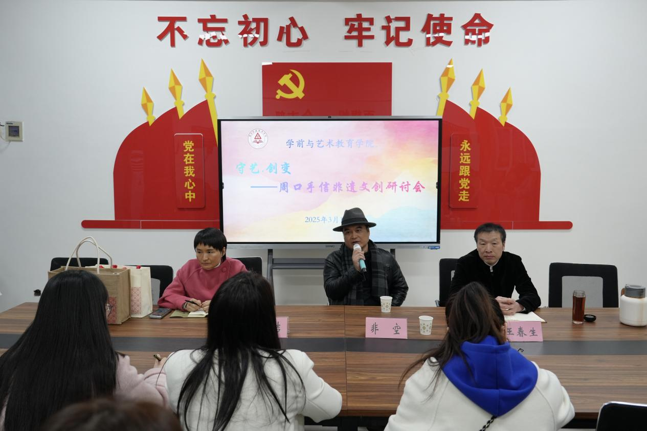 为传承中华优秀传统文化,促进非遗传承与创新,3月14日上午,ballBET贝博BB艾弗森在四楼党员活动室召开手信非遗文创研讨会。非空设计(深圳)有限公司创始人、国家知名设计师非空,周口昌建创业商会会长靳玉洁,视觉传达设计专业师生参加会议。会议由学院党总支书记王春生主持。