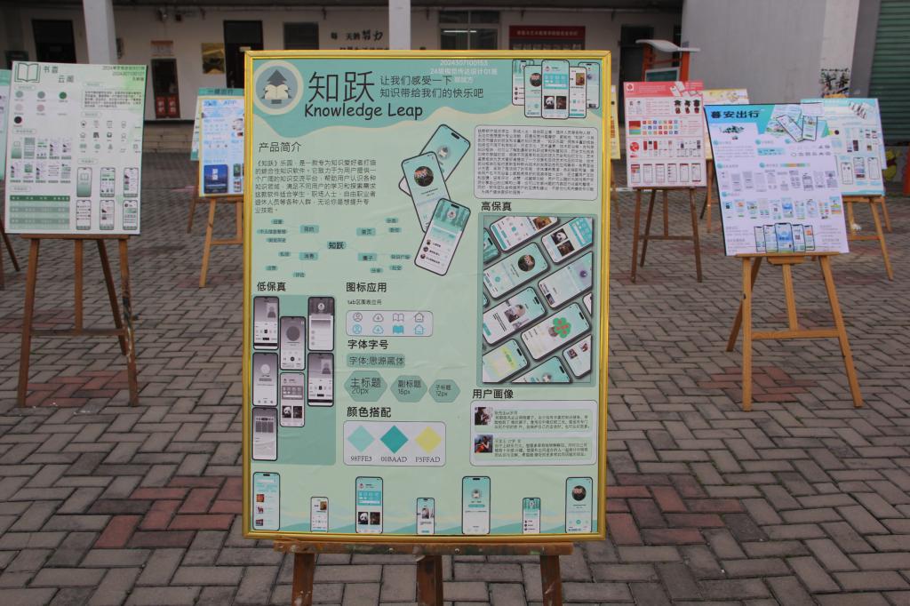 本次展览共展出48幅作品。同学们紧扣“用户体验”核心导向,以精准需求定位为出发点,在色彩方案与字体选择中巧妙融合多元视觉元素,将扎实专业功底与灵动创新思维充分融入作品创作,呈现出兼具实用性与艺术性的优质设计成果。