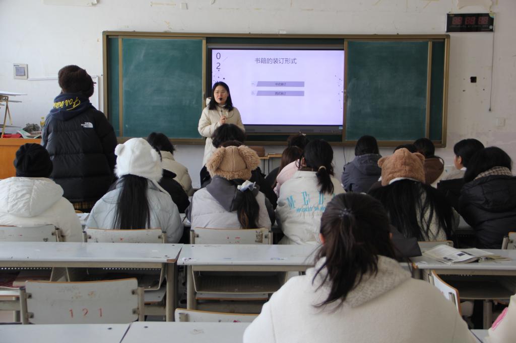 胡一帆老师主讲课程《书籍设计》,课程以书籍装订形式为教学核心,借助多媒体课件条理分明地讲解中西式装订的区别;将专业知识与实际案例深度融合,通过清晰的思路引导与生动的讲解演示,帮助学生直观掌握核心要点。