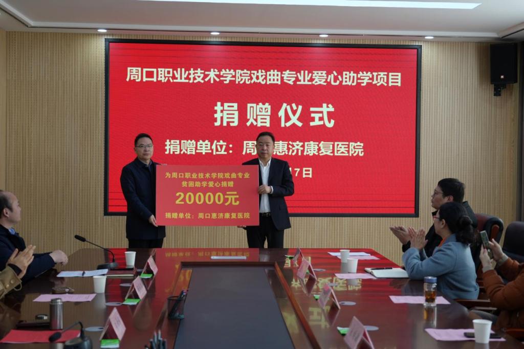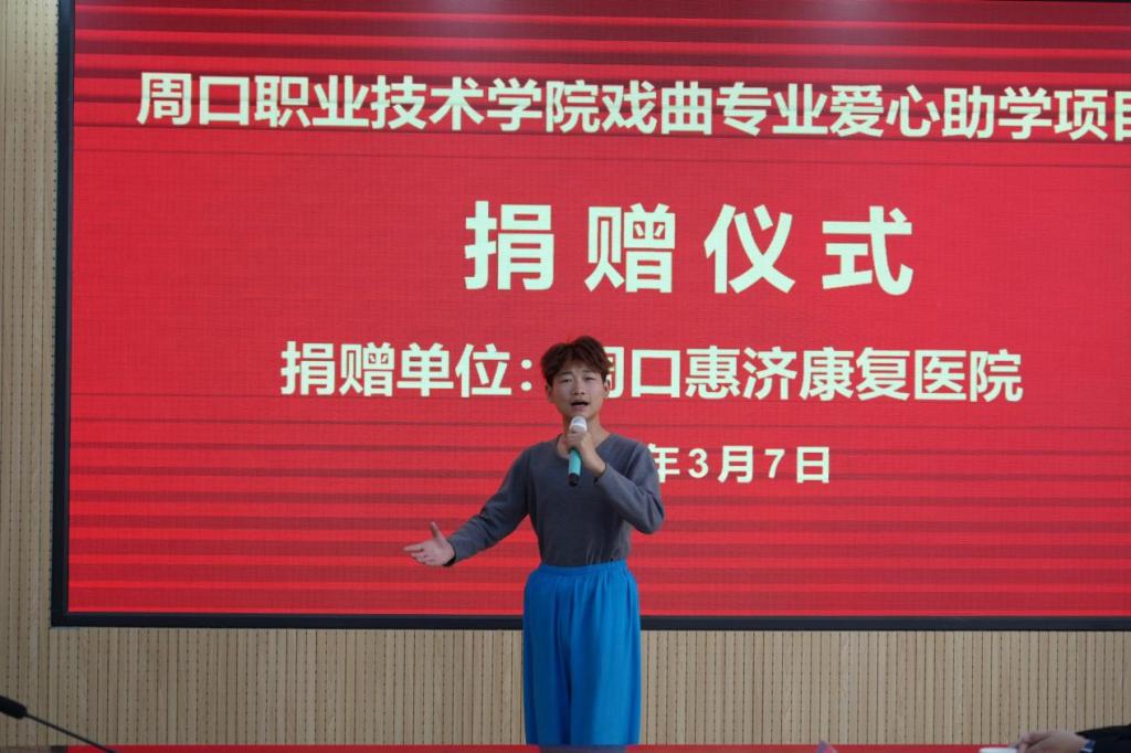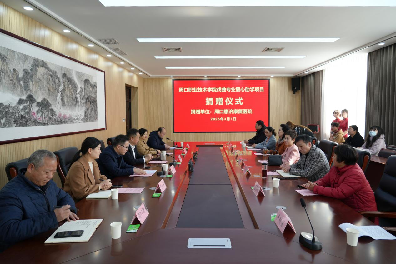 3月7日,周口惠济康复医院爱心捐赠仪式在我校开元校区第六会议室顺利举行。周口惠济康复医院院长王希振、副院长邓云华、副院长张凤荣、办公室主任宋继敏、ballBET贝博BB艾弗森副校长王隼出席仪式,ballBET贝博BB艾弗森(纺织服装学院)全体班子成员及戏曲表演专业全体学生参加仪式。学院院长高岐奎主持。
