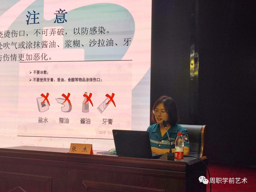 讲座中,张杰医生结合生活实际,通过现场讲授、图片展示、师生互动等多样化形式,为同学们讲解了气道异物、心肺复苏操作、 AED使用的详细流程,并就急救中如何判断意识情况、如何打开气道、怎样进行人工呼吸、溺水等应急救护技能进行了细致的介绍。台下同学专心听讲、认真思考、积极互动,收获满满。