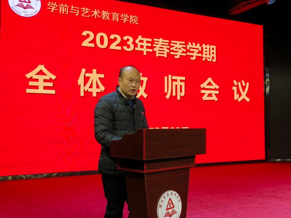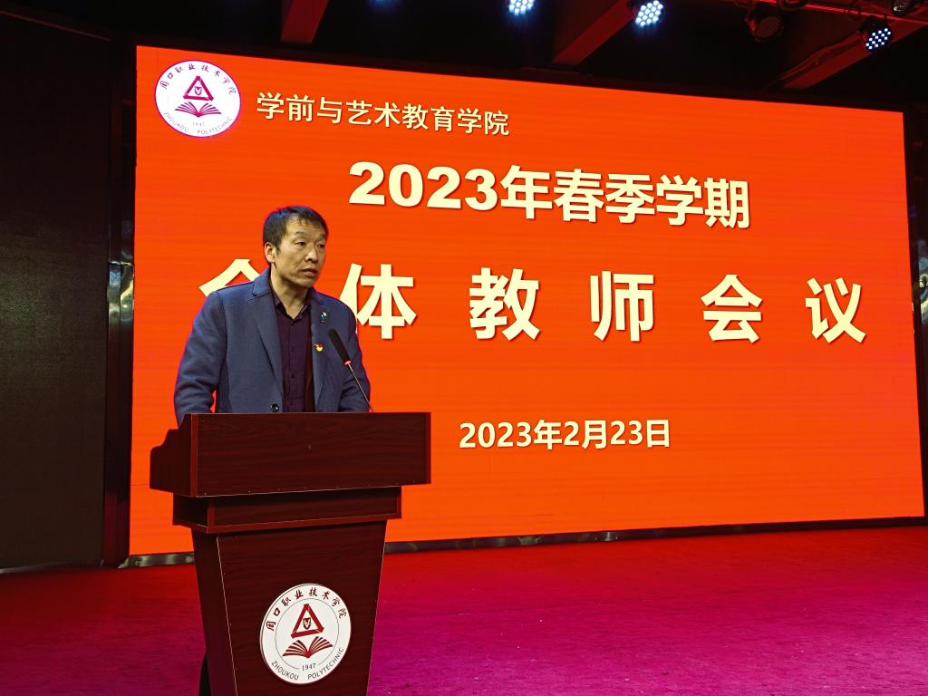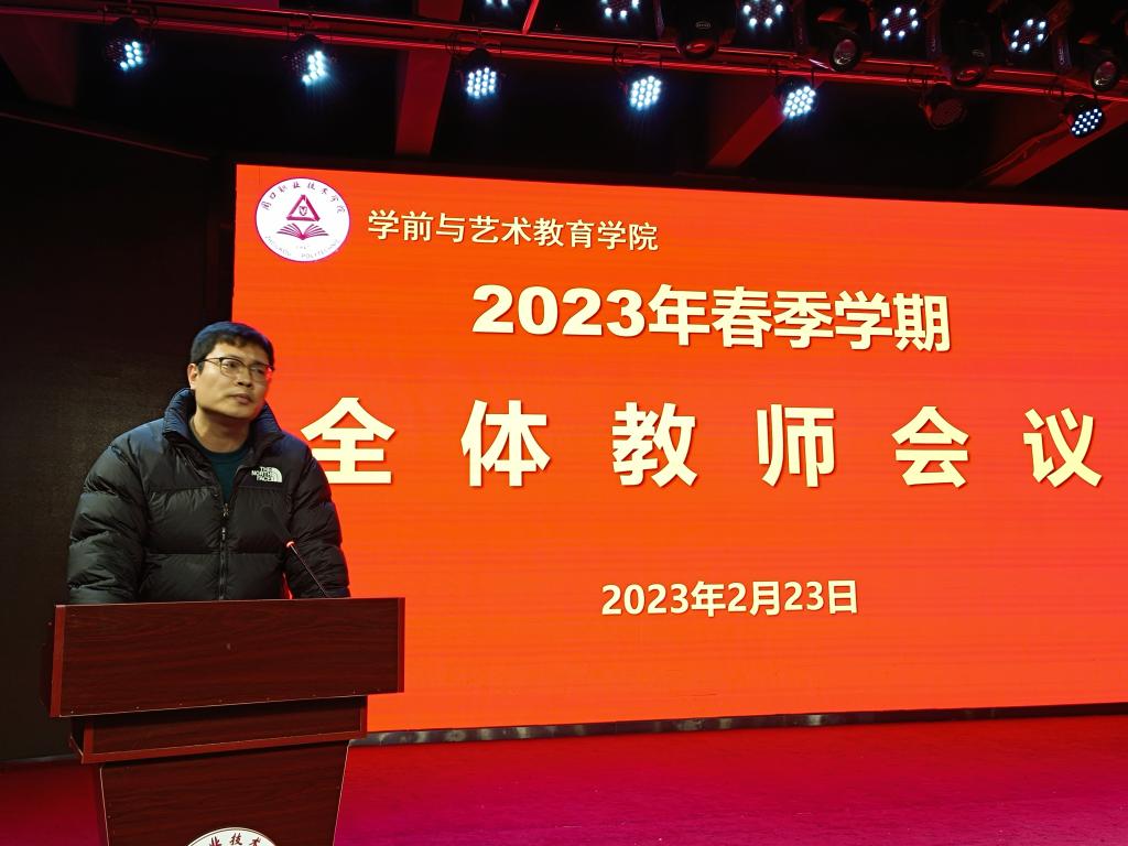 首先,院长高岐奎分别就党建、教学管理、学生管理等方面全面总结2022年度各项工作成绩与不足并提出要求。一、落实常规教学管理,坚持教学督导制度;二、优化调整专业设备,改革人才培养模式;三、加强师资建设,提升教师教育教学能力;四、要坚持与时俱进,注重工作研究和实践创新。相信全体教师定会凝心聚力,为学院发展带来新气象,谱写新篇章,再创新佳绩。