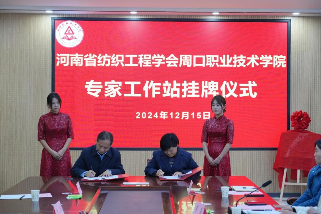 河南省纺织工程学会党委委员、副理事长、纺织工程专家陈国玉,河南工程学院服装学院院长、材料及产品设计专家刘杰,周口市科协党组成员、副主席徐倩,学校相关职能部门及学院负责人、纺织服装学院师生代表等参加。
