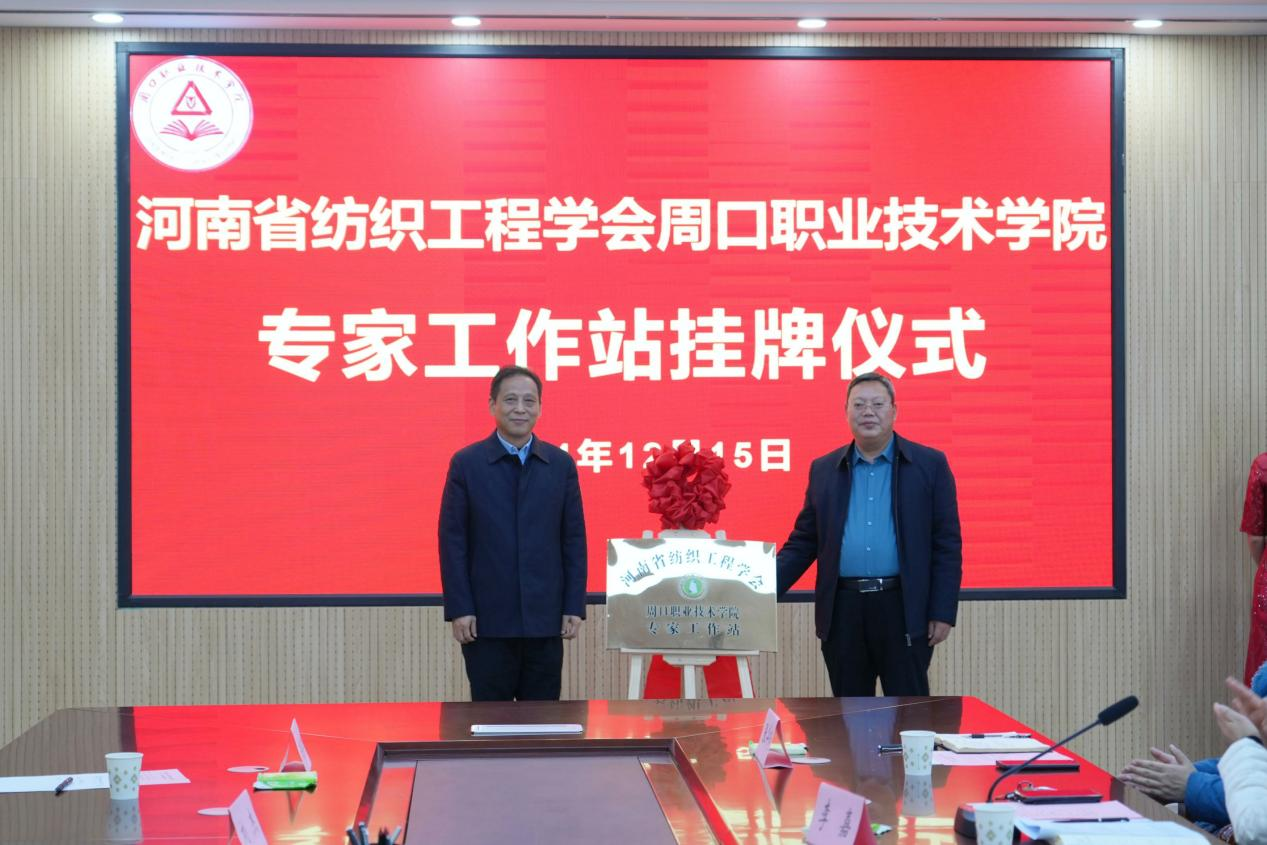 杨润凯、李明臣为河南省纺织工程学会ballBET贝博BB艾弗森专家工作站揭牌。